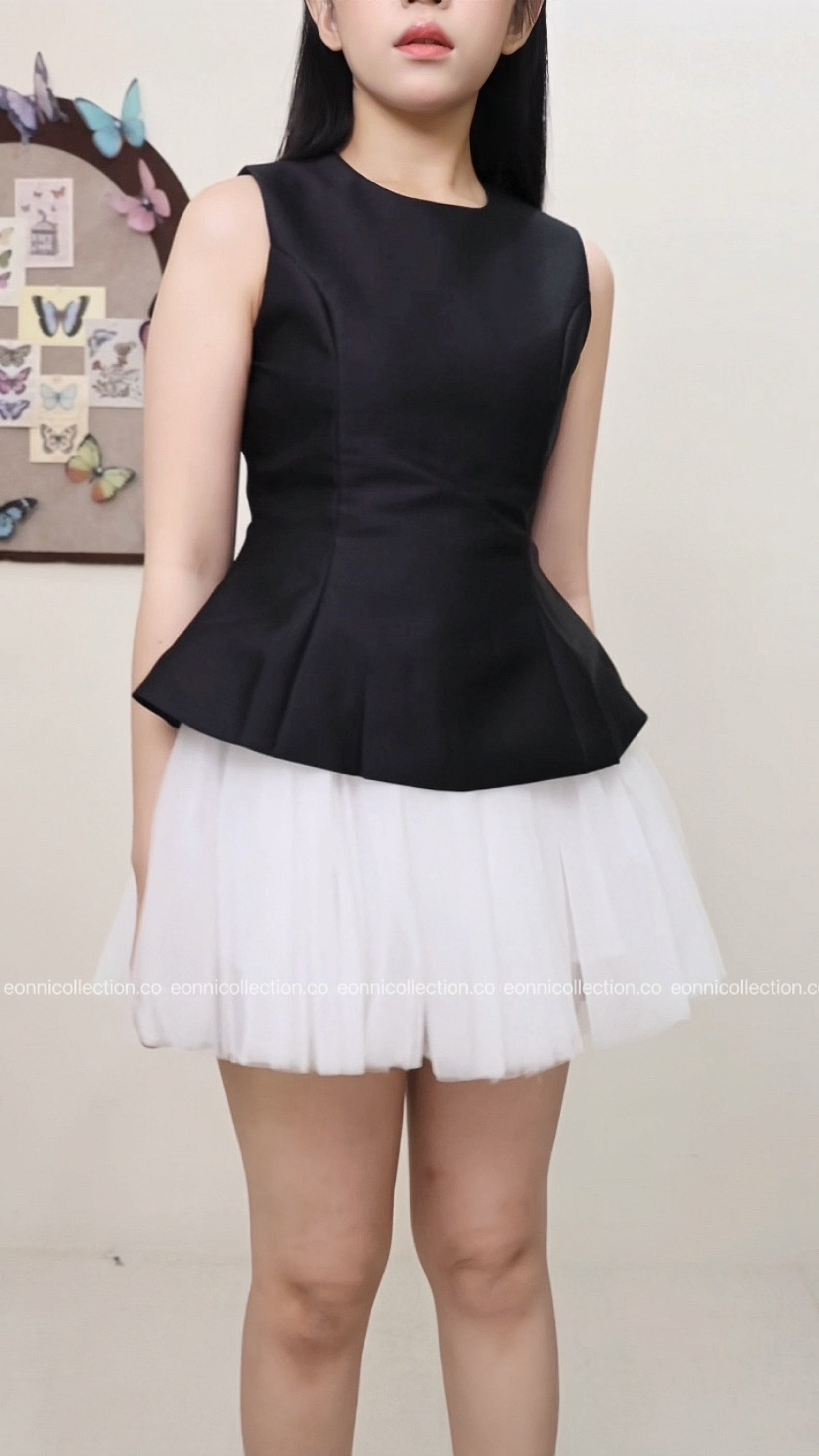 #2046 Glossy Ballet Inspired Dress Layered Tulle & Dramatic Puff Skirt -Black