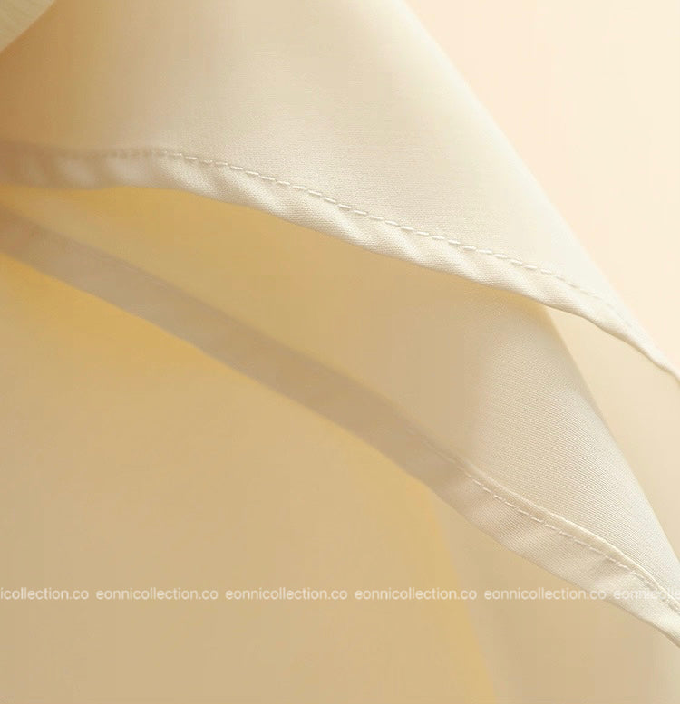 收褶设计修饰腰线,锦缎亲肤光滑,透气不闷热。